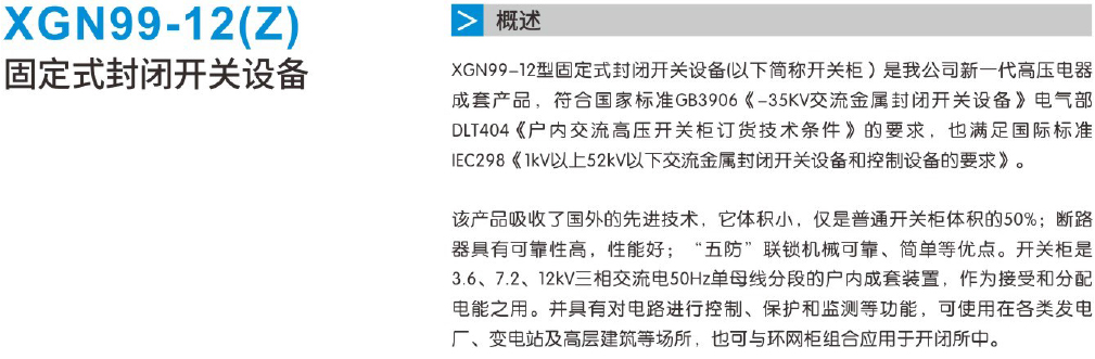 XGN99 -12型固定式封閉開關(guān)設(shè)備(以下簡稱開關(guān)柜)是我公司新-代高壓電器