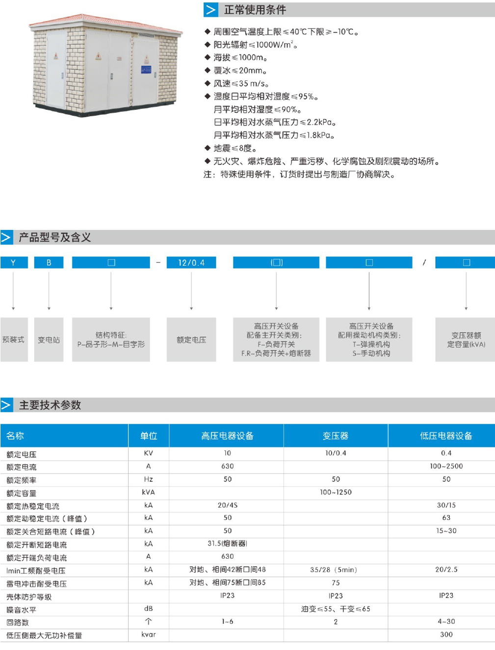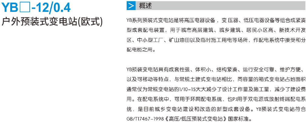 YB系列預(yù)裝式變電站是將高壓電器設(shè)備,變壓器、低壓電器設(shè)備等組合成緊湊.